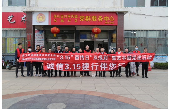 為進一步普及社區(qū)群眾消費者權(quán)益知識,增強日常消費、網(wǎng)絡(luò)消費、金融消費的維權(quán)意識。3月15日下午,藍(lán)天集團紀(jì)委綜合部黨支部和煙臺聯(lián)合產(chǎn)權(quán)交易服務(wù)有限公司黨支部邀請聯(lián)合產(chǎn)權(quán)“資本鏈”黨總支聯(lián)盟單位,以紅色黨建為引領(lǐng),以消費者權(quán)益日為契機,在初家街道鳳凰社區(qū)開展“3.15”宣傳日雙報到暨資本鏈黨建活動。集團黨委委員、聯(lián)合產(chǎn)權(quán)黨支部書記、董事長初志杰同志,集團黨委委員、紀(jì)委書記湯志厚同志,以普通黨員身份參加。