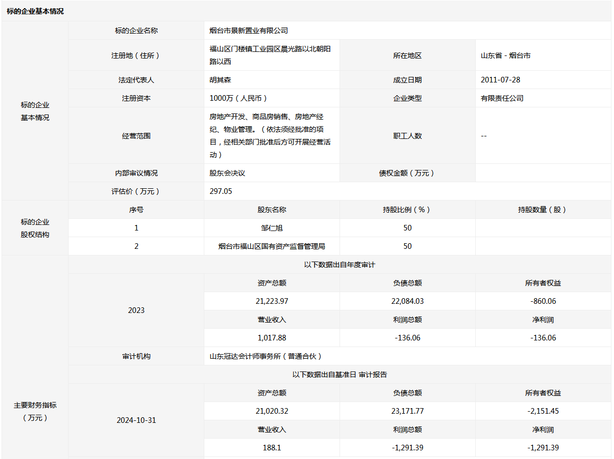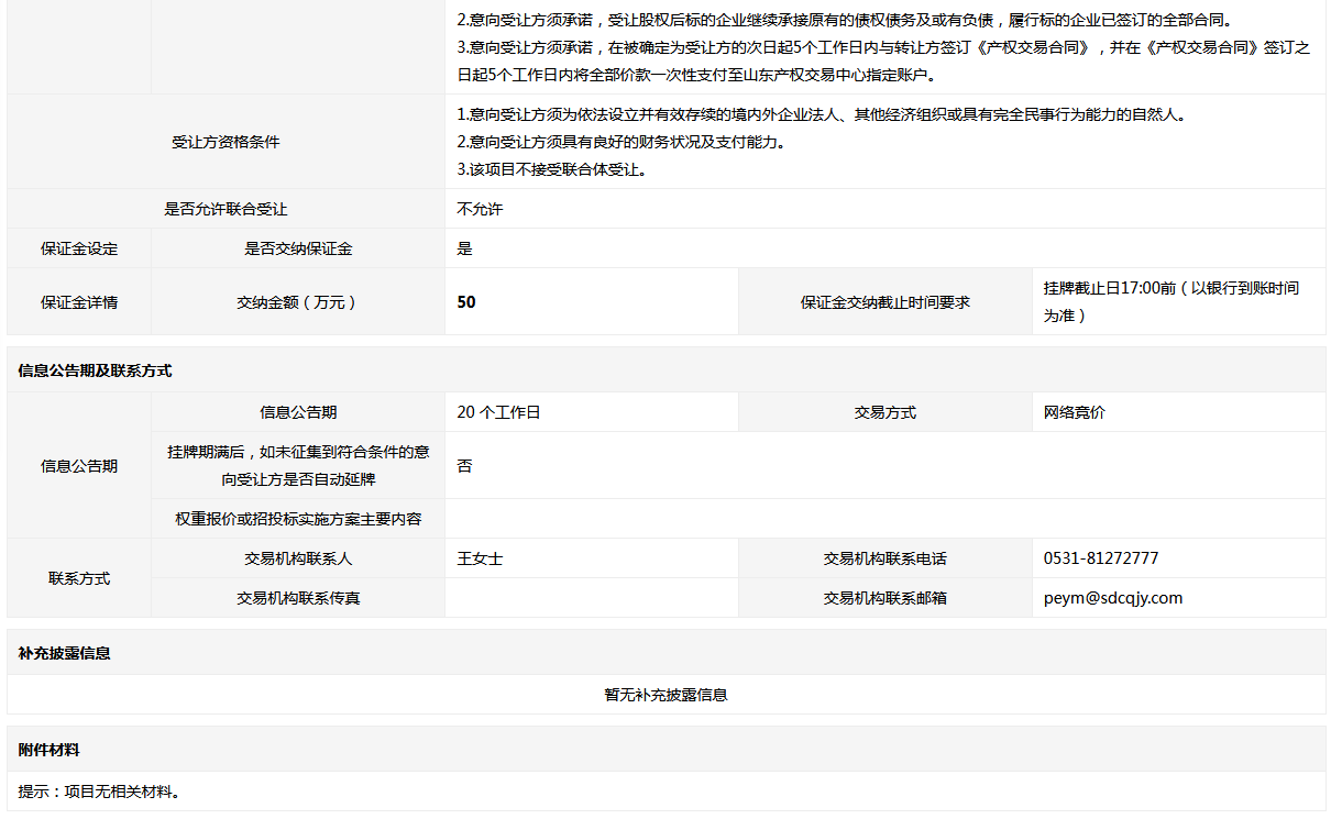 轉讓方: 煙臺市福山區(qū)財政局(煙臺市福山區(qū)國有資產監(jiān)督管理局)