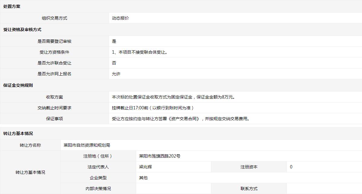轉(zhuǎn)讓方:萊陽(yáng)市自然資源和規(guī)劃局