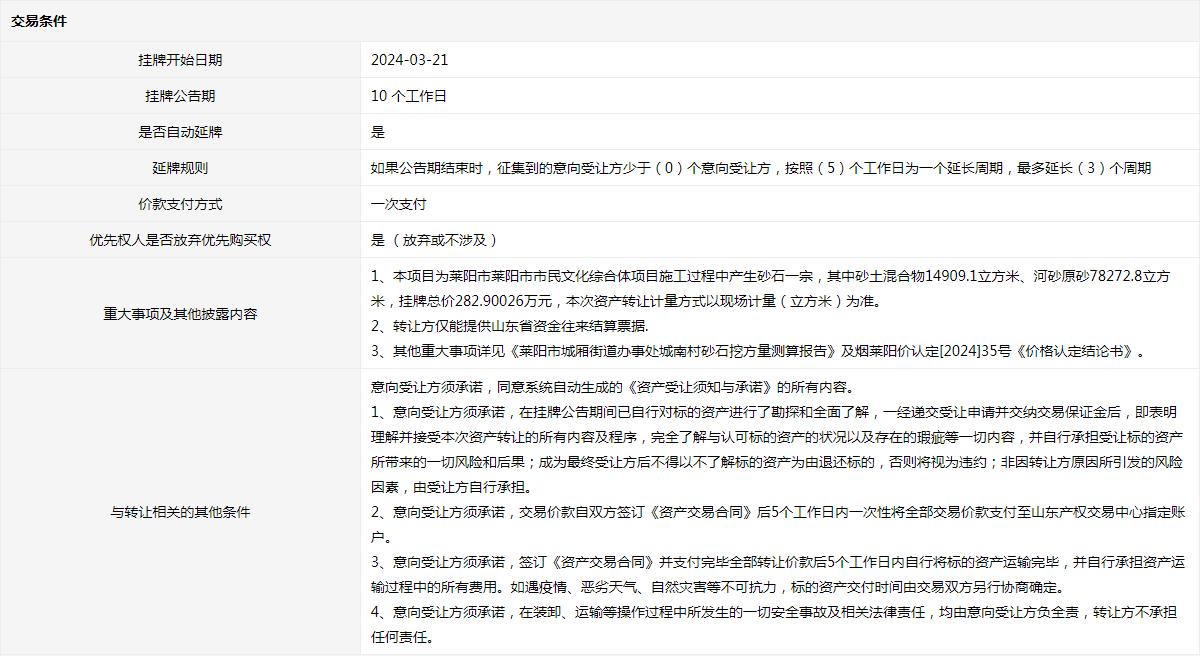 煙臺(tái)市城市建設(shè)發(fā)展集團(tuán)有限公司資源開發(fā)分公司塔山北路施工產(chǎn)出砂石出售項(xiàng)目交易公...