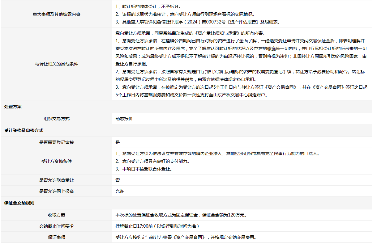 山東信遠集團有限公司持有的舊設備一宗