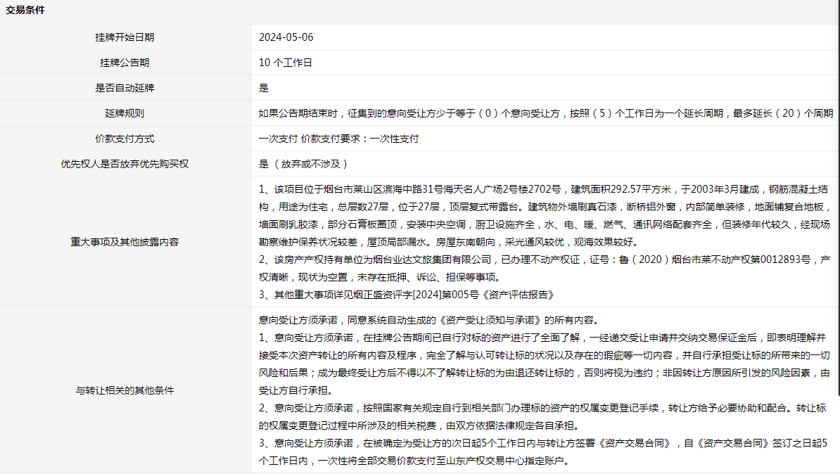 - 轉(zhuǎn)讓方:煙臺(tái)業(yè)達(dá)文旅集團(tuán)有限公司