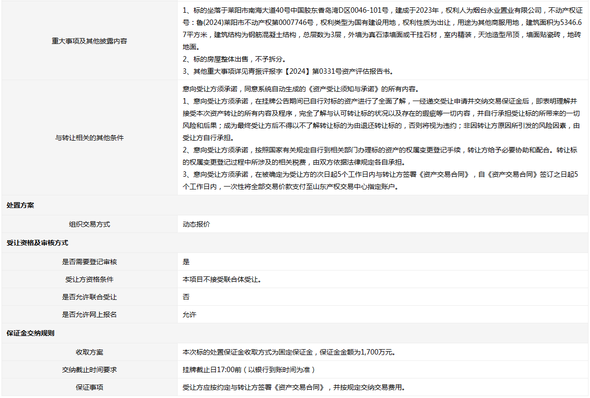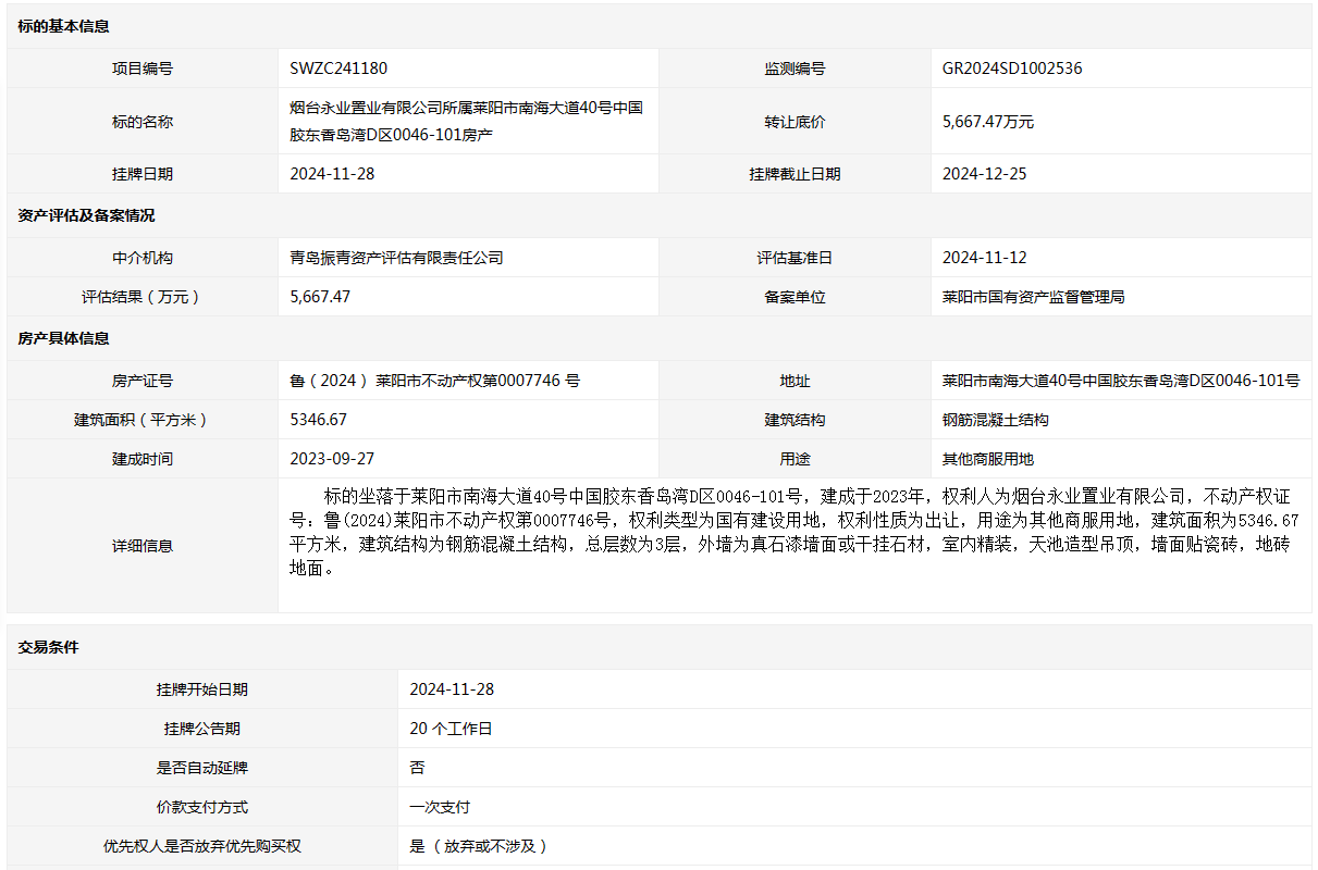 - 轉(zhuǎn)讓方:煙臺(tái)永業(yè)置業(yè)有限公司