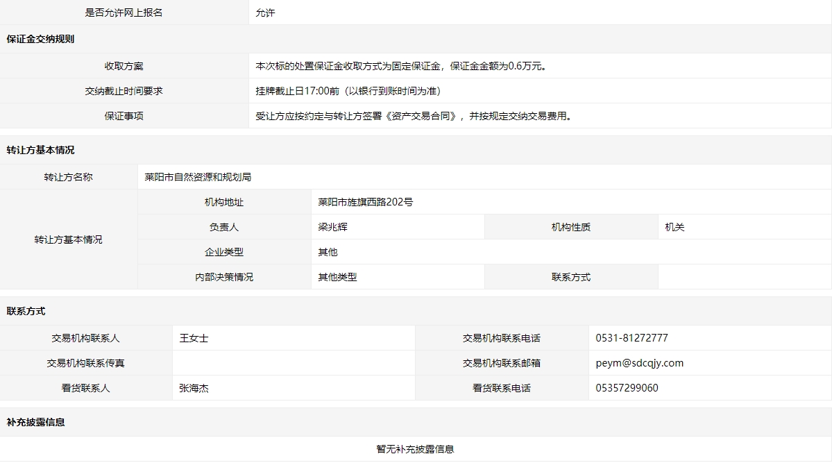 轉(zhuǎn)讓方:萊陽市自然資源和規(guī)劃局