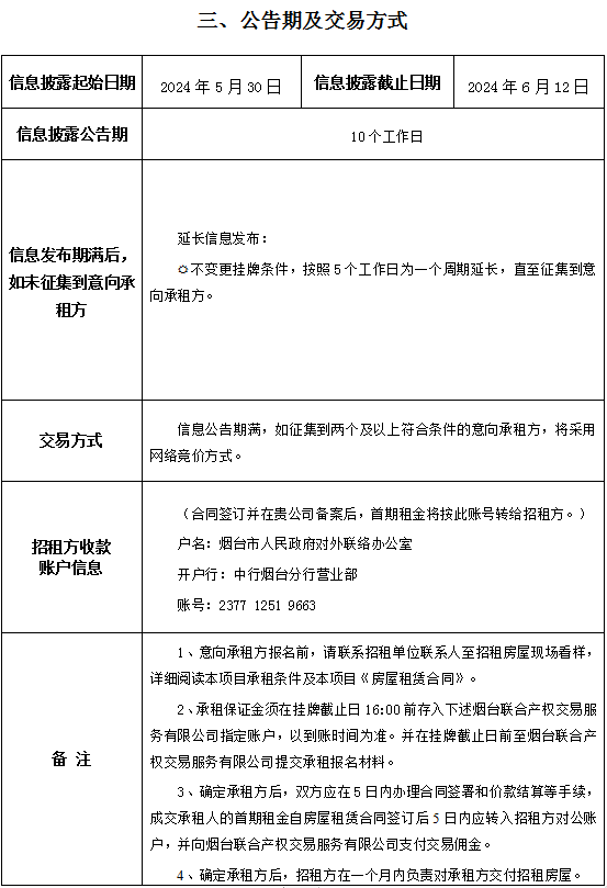 掛牌起止日期:2024年05月30日至2024年06月12日